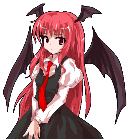 Koakuma's inclusion in my roster was inspired by the way Parsee was introduced: I was making a character for a Pathfinder game and she happened to be the closest image to what I had in mind for my new character...